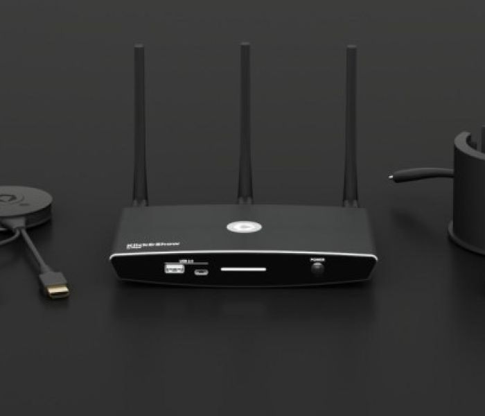 Mit der Basisversion von Klick&Show K-FleX können Benutzer audiovisuelle Inhalte von Laptops oder mobilen Geräten auf einem Hauptbildschirm ohne Kabelverbindungen präsentieren. Das plattformunabhängige Präsentationssystem unterstützt BYOD und ermöglicht die Übertragung in brillanter Qualität bis zu 4K über verschiedene Technologien wie Transmitter, Client App oder AirPlay, Miracast und Google Cast.