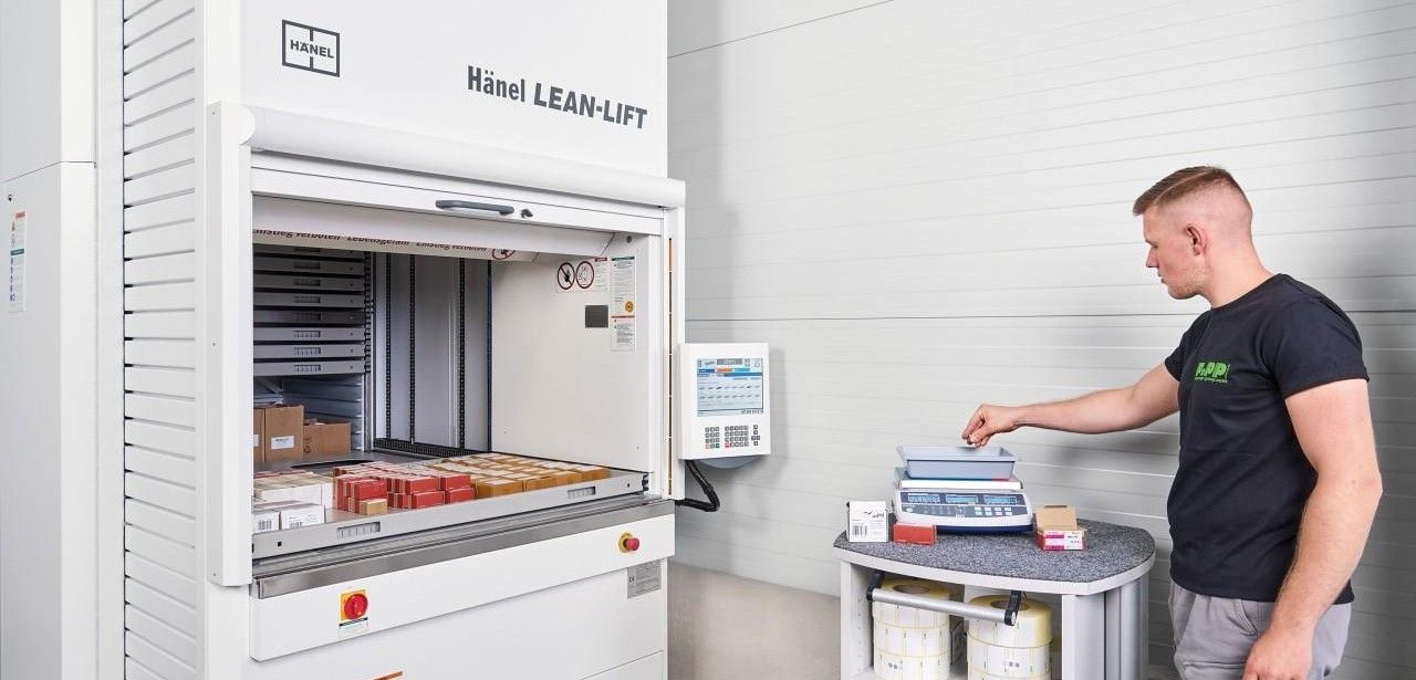 Am Medical Valley-Standort Forchheim integriert die Popp GmbH & Co. KG den Hänel Lean-Lift(R) direkt in die Produktionsumgebung, um Lagerflächen effizient zu gestalten. Die Steuerung MP 14 N mit 12-Zoll-Touchscreen und die PictureControl-Kamera ermöglichen lückenlose Bestandsübersicht. Eine integrierte Zählwaage sorgt für exakte Mengenkontrolle, während der Etikettendrucker Teile eindeutig markiert. Zugangscodeverwaltung gewährt autorisierten Mitarbeitern Zugriff. Insgesamt reduziert die Anlage Laufwege, steigert die Prozessgeschwindigkeit und vereint Funktionalität mit modernem, ästhetischem, attraktivem Design.