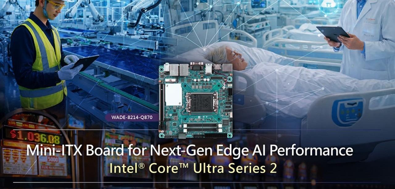 Portwell kombiniert auf dem WADE-8214-Q870 leistungsfähige Intel Core Ultra Prozessoren der zweiten Generation mit dem Q870-Chipsatz auf einem kompakten Mini-ITX-Board. Mit PCIe 5.0 x16, zwei DDR5-SO-DIMM-Slots bis 96 GB und M.2-Steckplätzen eignet sich das Mainboard optimal für KI-gestütztes Edge Computing. Triple-Display-Ausgabe über HDMI 2.1, DisplayPort und USB-C unterstützt vielseitige Anzeigekonfigurationen. Umfangreiche I/O-Ports, Dual-LAN und robuste Bauweise gewährleisten hohe Zuverlässigkeit in industriellen und eingebetteten Anwendungen. Die Baugröße beträgt 170×170 mm präzise.